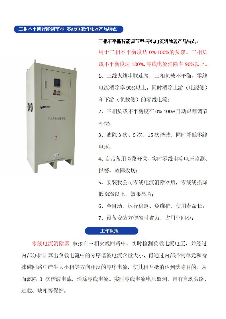專(zhuān)注于零線(xiàn)安全問(wèn)題解決。改善電能質(zhì)量。消除:零線(xiàn)電流過(guò)大、零線(xiàn)電壓過(guò)高、三次諧波。解決:零線(xiàn)發(fā)熱、零線(xiàn)燒斷、開(kāi)關(guān)跳閘等問(wèn)題,防止火災(zāi)隱患!節(jié)能、降損、為您的系統(tǒng)零線(xiàn)保駕護(hù)航!